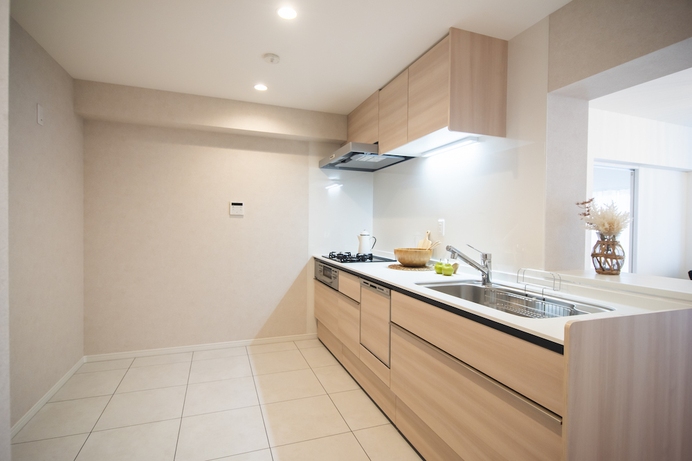 キッチンは食洗機付き仕様、キッチンスペースは作業のしやすい広々さを確保しました。