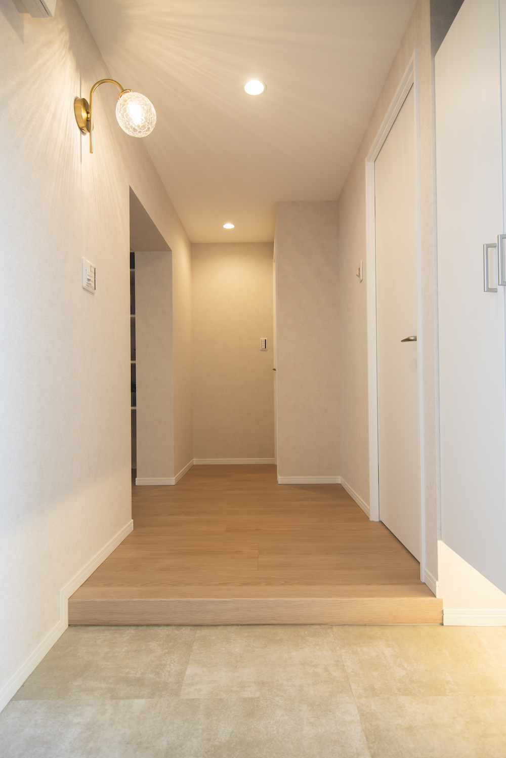 足元確認がしやすいよう、シューズクローゼット下にはダウンライトも設置してあります。
